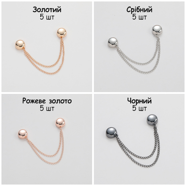 Універсальні закльопки на магнітах — це зручний і стильний аксесуар для штанів та інших елементів одягу. Вони дозволяють швидко і легко зафіксувати довжину штанів чи рукавів, забезпечуючи комфорт і впевненість у собі протягом усього дня!