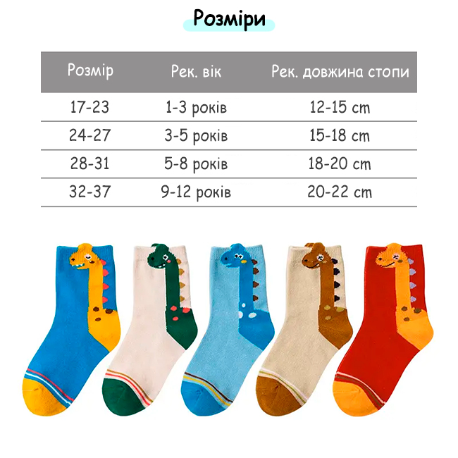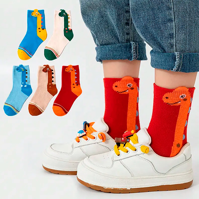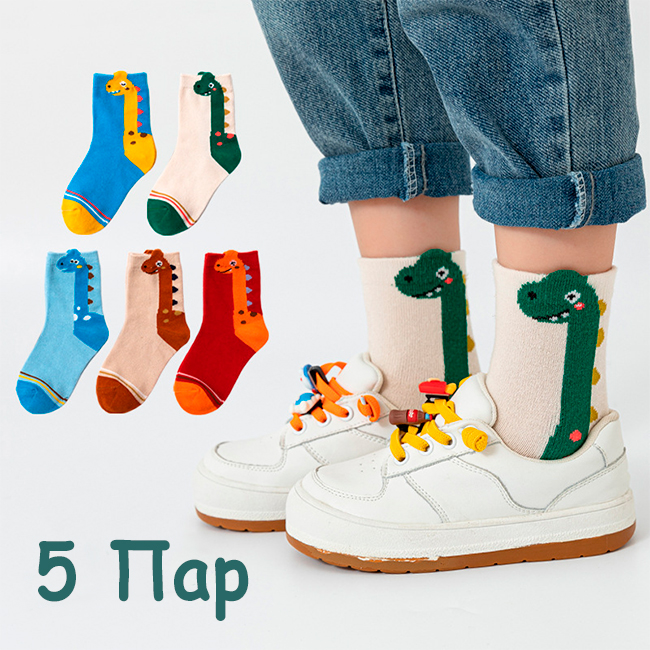 Комплектація: 5 * Пар дитячих шкарпеток з динозавром