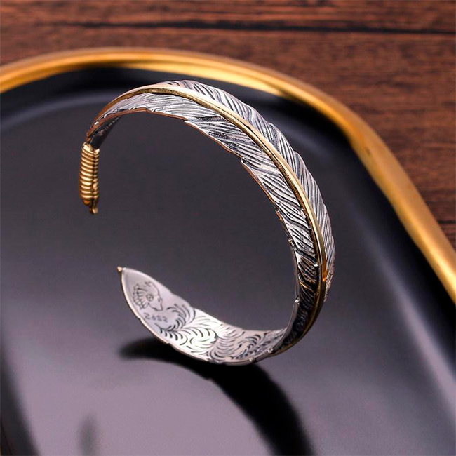 Комплектація: 1 * Вишуканий чоловічий браслет з візерунком пір'я