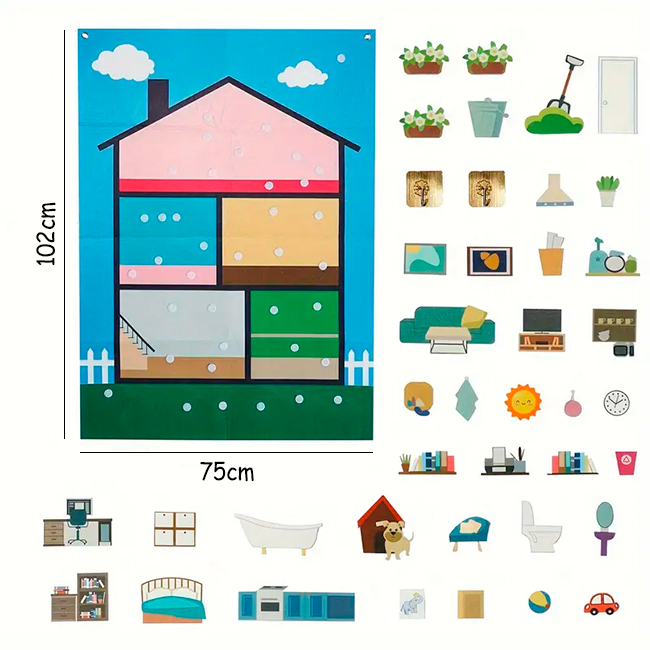 Ігрова фетрова дошка «Будинок» — це інтерактивна гра для дітей, яка допомагає розвивати дрібну моторику та логічне мислення. Завдяки вбудованим липучкам, елементи легко розміщувати та переміщати по фетровій дошці, що робить гру ще цікавішою для дитини!