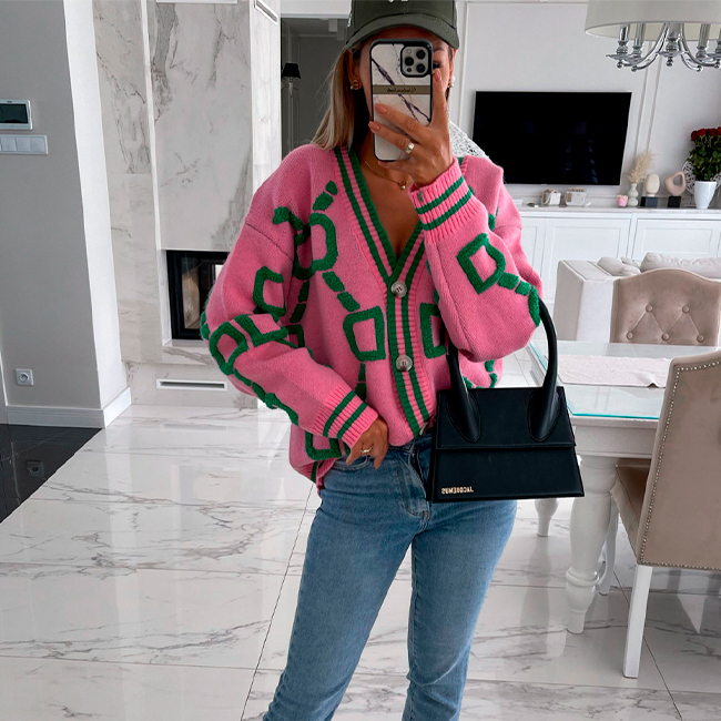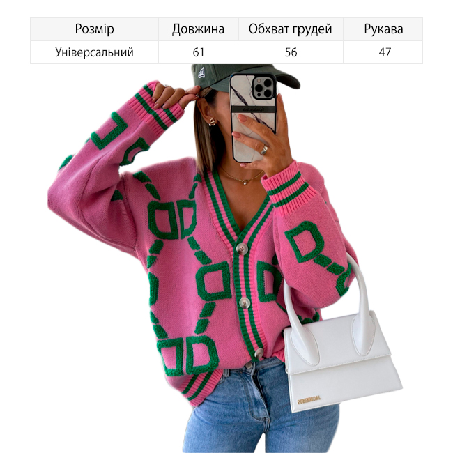Яскравий в'язаний жіночий кардиган з V-подібним вирізом та ґудзиками — це ідеальний вибір для прохолодних осінньо-зимових днів. Цей теплий кардиган забезпечує комфорт і затишок протягом усього дня, а стильний і яскравий дизайн легко доповнить будь-який ваш образ!