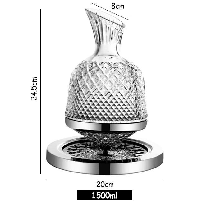 Розкішний обертовий графін для напоїв – це стильний аксесуар, який додасть елегантності вашому столу. Завдяки обертовій підставці, він забезпечує зручність при подачі напоїв і стане чудовим подарунком на будь-яке свято. Графін відмінно підходить для зберігання та розливання вина, віскі, соку чи води!