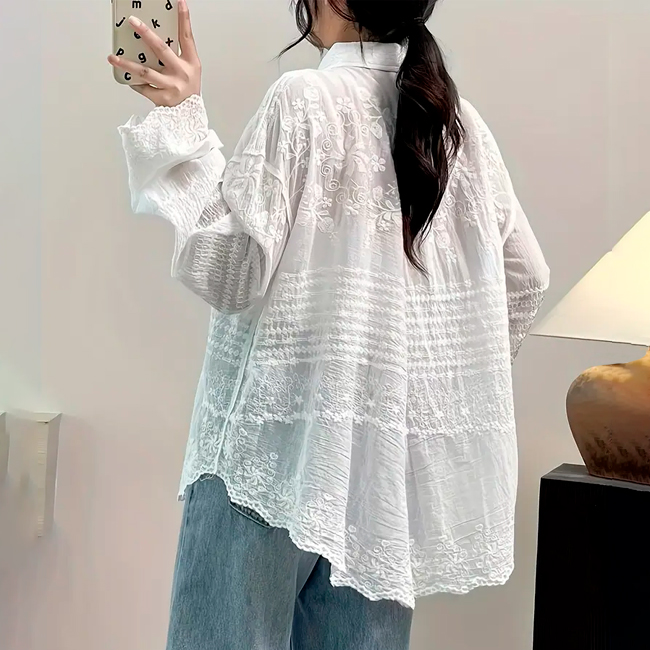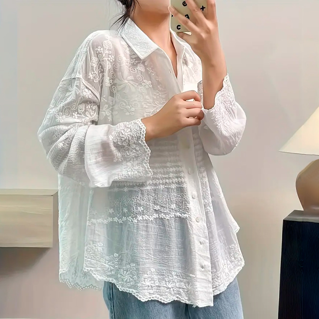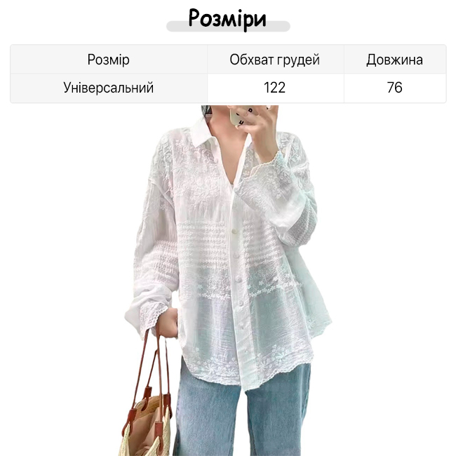 ✔ Вишуканий об’ємний квітковий візерунок робить цю блузу яскравим акцентом у будь-якому образі.