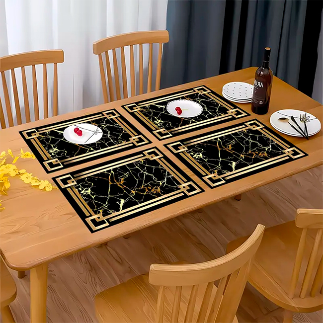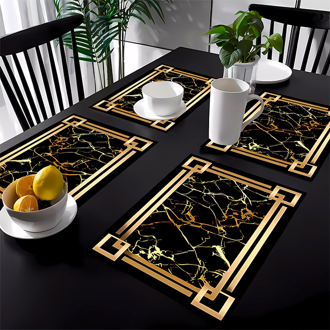 ✔ Стильний чорно-золотий колір і сучасний вигляд підкладок додають елегантності та розкоші до вашого столу.