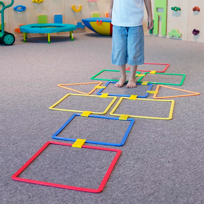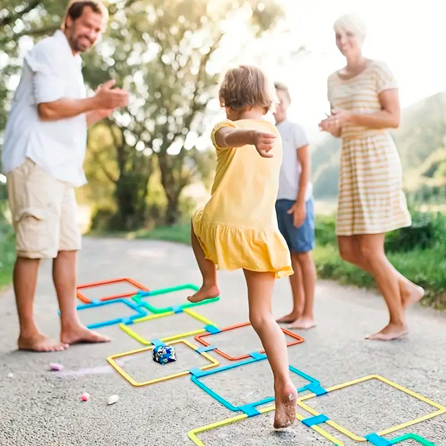 Пластиковий набір для гри у класики — це чудовий спосіб активного відпочинку для дітей, який сприяє їх фізичному розвитку. Цей набір стрибаючих кілець на спортивну тематику оснащений спеціальними конекторами, що дозволяє їх легко об'єднувати у різні фігури для гри вдома або на вулиці!