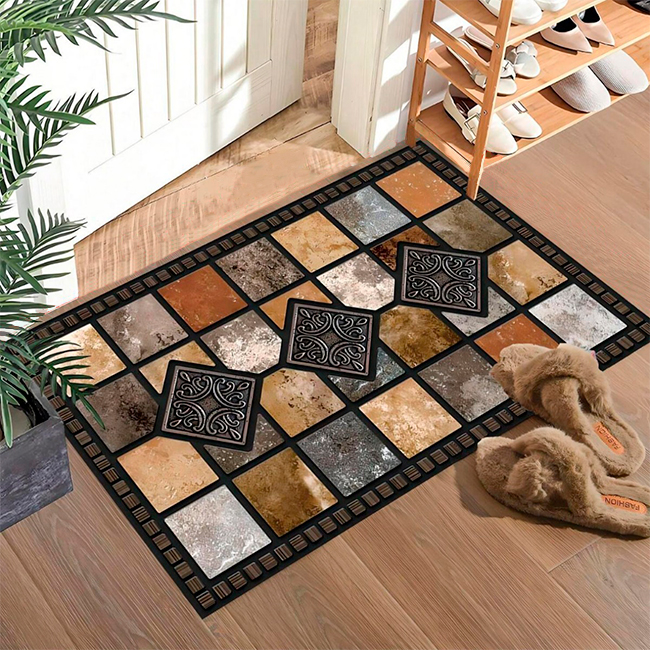 Побутовий вхідний килимок з креативним дизайном — це стильний і функціональний аксесуар для вашого дому. З візерунком у вигляді кам'яної цегли, цей нековзкий килимок ідеально підходить для передпокою, тераси, балкона, ванної та інших кімнат. Протиковзке покриття забезпечує безпеку, а легкість у догляді робить його практичним вибором для щоденного використання!