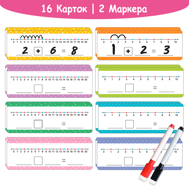✔ Картки допомагають дітям легко навчитися додавати та віднімати різні числа, що є важливим етапом у їхньому навчанні.