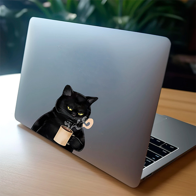 Креативна наклейка на ноутбук «Cat Sipping Coffee» — це оригінальний аксесуар, який додасть вашому ноутбуку або іншим речам унікального стилю. Наклейка у вигляді кота з чашкою кави не лише прикрасить ваш гаджет, але й стане чудовим способом виразити вашу індивідуальність. Легко наноситься на гладкі поверхні завдяки самоклеючій основі та не залишає слідів після видалення!