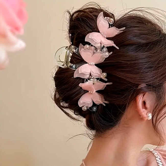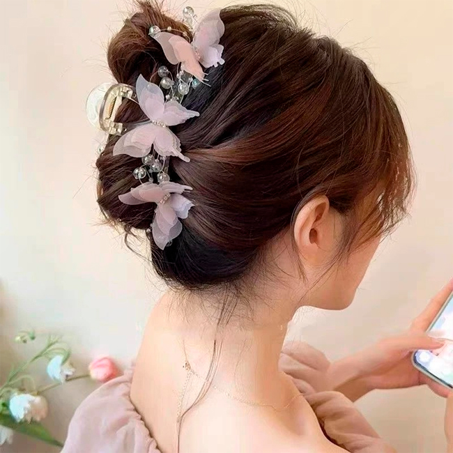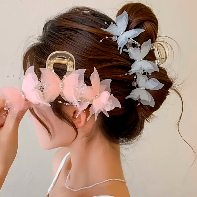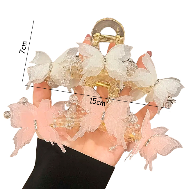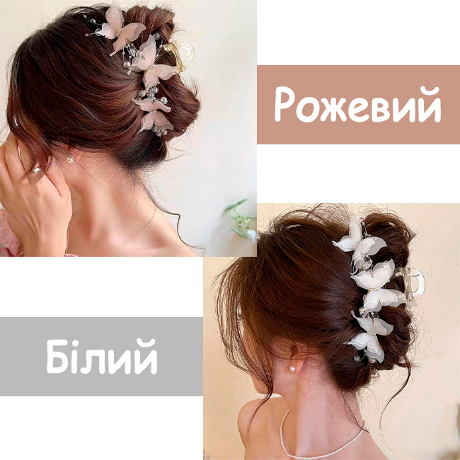 Елегантна заколка для волосся з метеликами — це ніжний аксесуар, який додасть шарму вашому образу. Ідеально підходить для щоденного носіння та різних ситуацій, ця заколка надійно фіксує волосся протягом усього дня, навіть під час активних рухів. Її елегантний дизайн з метеликами робить її чудовим доповненням до будь-якого стилю!