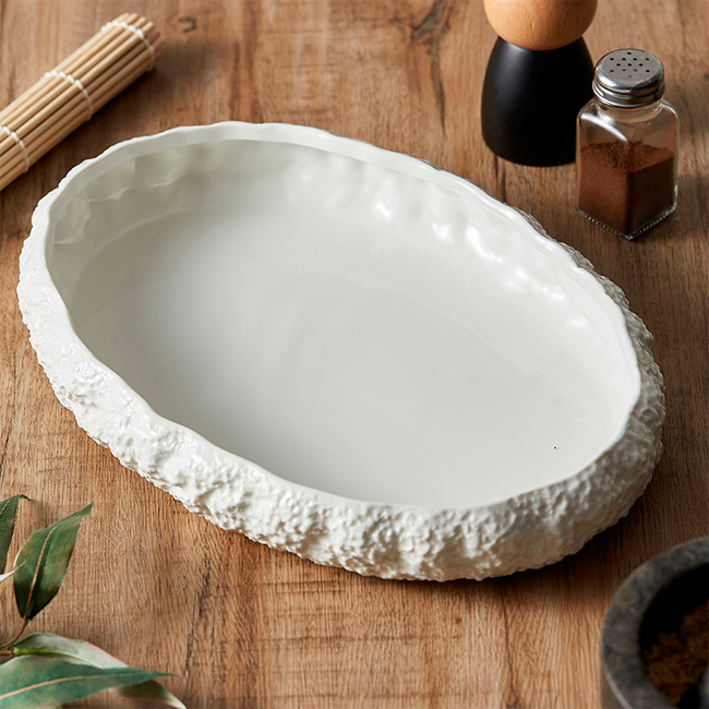 ✔ Вишуканий і елегантний овальний дизайн з рельєфним візерунком надає тарілці стильного вигляду, що підкреслює вашу увагу до деталей.