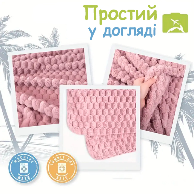 Особливості: Для подорожей, Теплий і м'який матеріал, Компактне зберігання, Простий догляд, Однотонний дизайн
