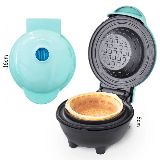 Мініатюрна вафельна машинка для десертів — компактний помічник для швидкого приготування хрустких вафельних мисочок, ідеальних для морозива, фруктів чи інших ласощів. Антипригарне покриття забезпечує легке очищення, а простий дизайн робить її незамінною на кухні. Зручна для щоденного використання, вона не займає багато місця і додає креативності вашим десертам!