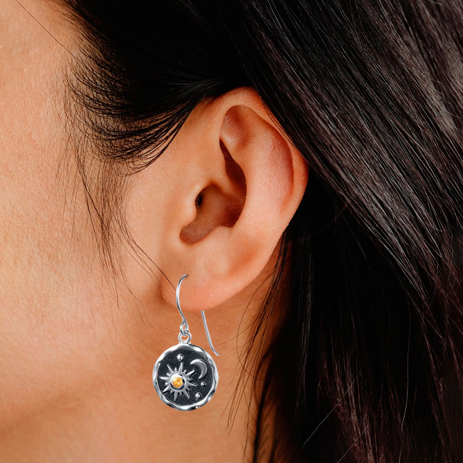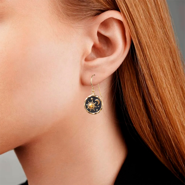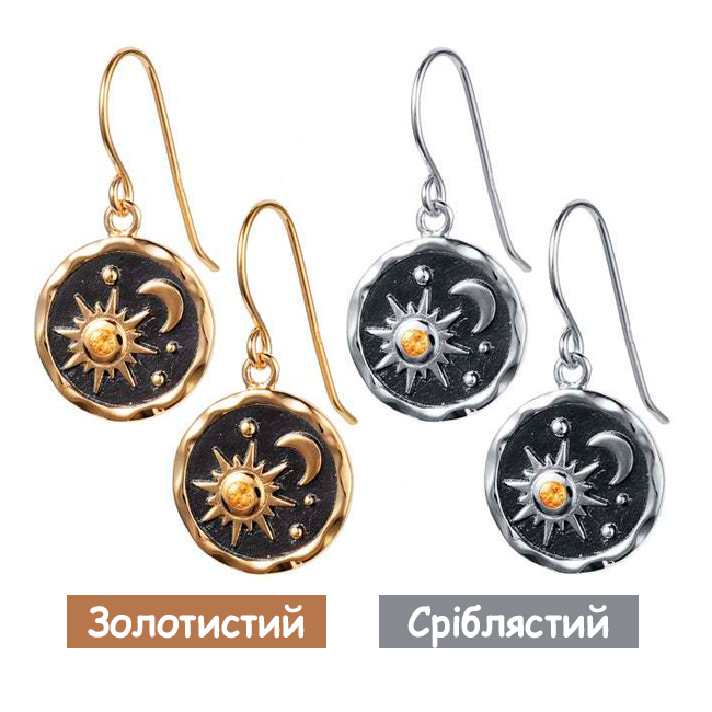 Жіночі сережки у готичному стилі «Ніч» — вінтажні аксесуари для повсякденного носіння та особливих подій, що додають загадковості та елегантності будь-якому образу. Легкі та зручні, вони не викликають дискомфорту навіть при тривалому носінні, ідеально підходячи для будь-яких ситуацій. Елегантний дизайн з мотивами сонця та місяця гармонійно доповнює готичний стиль, роблячи їх незамінним елементом гардероба!
