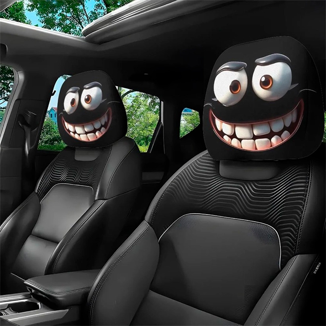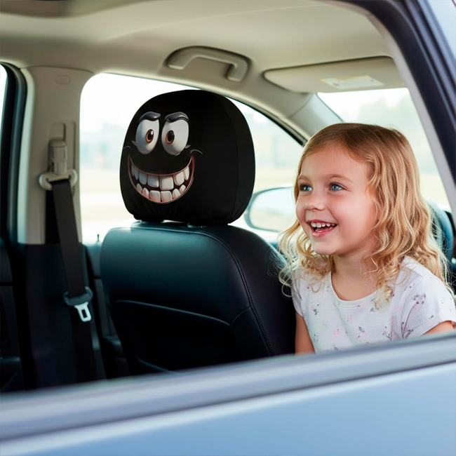 Чохли на підголівники автомобіля з принтом обличчя (2 шт.) — кумедні захисні аксесуари, що оберігають підголівники від забруднень та пошкоджень, додаючи позитиву в салон. Вони легко одягаються на підголівники різної форми, не спадають під час їзди, і забезпечують комфортні поїздки. Оригінальний дизайн з кумедними обличчями робить їх ідеальним доповненням для щоденного використання!