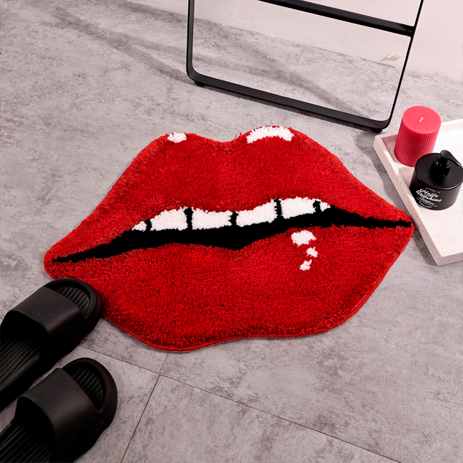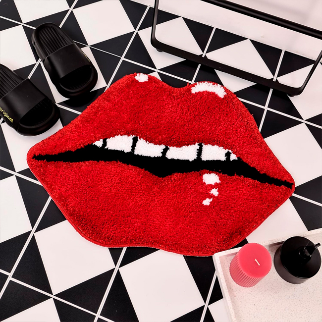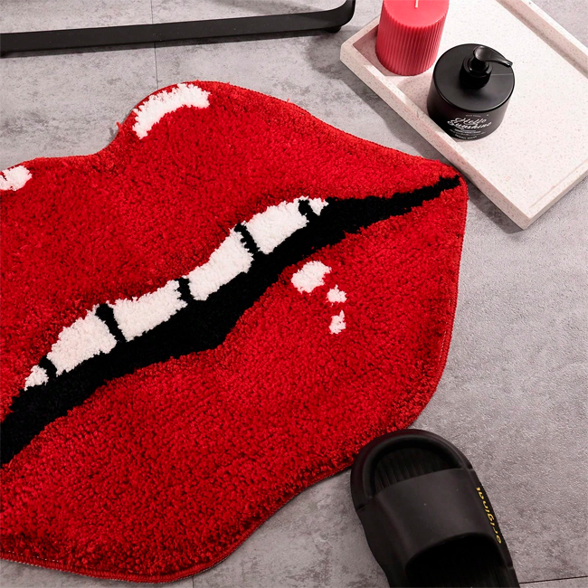 Плюшевий нековзкий килимок «Губи» — креативний аксесуар з протиковзким покриттям у формі жіночих губ, ідеальний для ванної, передпокою чи будь-якої кімнати. Він швидко поглинає вологу, запобігає ковзанню та забезпечує безпеку на підлозі. Яскравий оригінальний дизайн додає шарму інтер'єру, роблячи його не лише функціональним, а й стильним елементом декору!