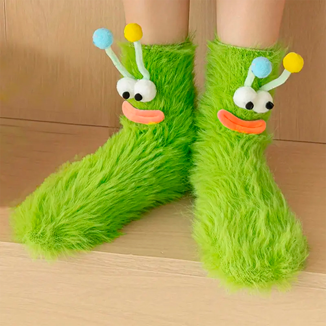 Пухнасті шкарпетки-монстрики «Green Smile» — теплі кумедні аксесуари у вигляді монстрів, ідеальні для щоденного домашнього носіння, що забезпечують тепло та комфорт протягом усього дня. Приємний еластичний матеріал підходить для ніжок різного розміру, роблячи їх улюбленим вибором для релаксу!