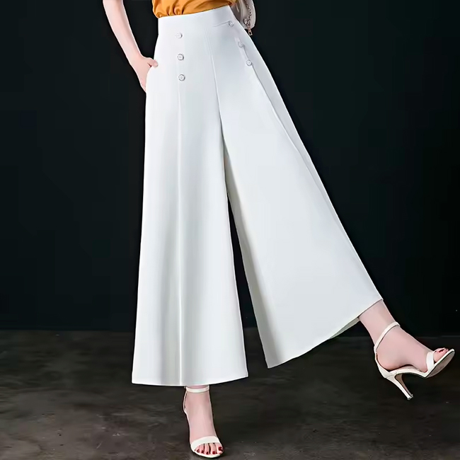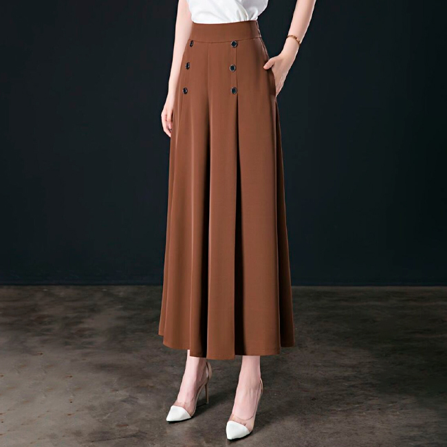 Відкрийте для себе елегантність і комфорт в одному з цими штанами-спідницею з високою талією та ґудзиками — ідеальним вибором для повсякденного носіння та будь-яких ситуацій. Широкий крій штанів удосконалює ваші пропорції, роблячи силует стрункішим і вищим, забезпечуючи стильний і привабливий вигляд без зайвих зусиль!