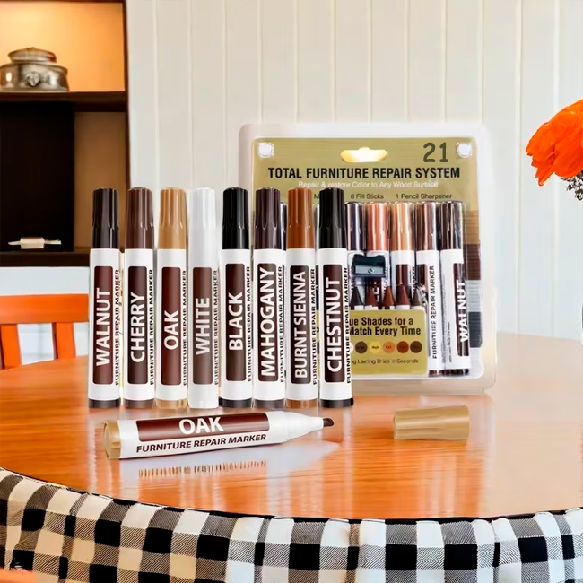 ✔ Набір маркерів дозволяє відновлювати різних дерев'яні меблі, забезпечуючи універсальність та ідеальну адаптацію до будь-яких пошкоджень без необхідності професійних інструментів.